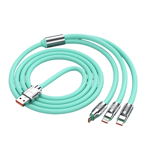 뜨거운 판매 3-in-1 실리콘 USB to Type-C 케이블 120W 전화 용 아연 합금 데이터 케이블로 고속 충전